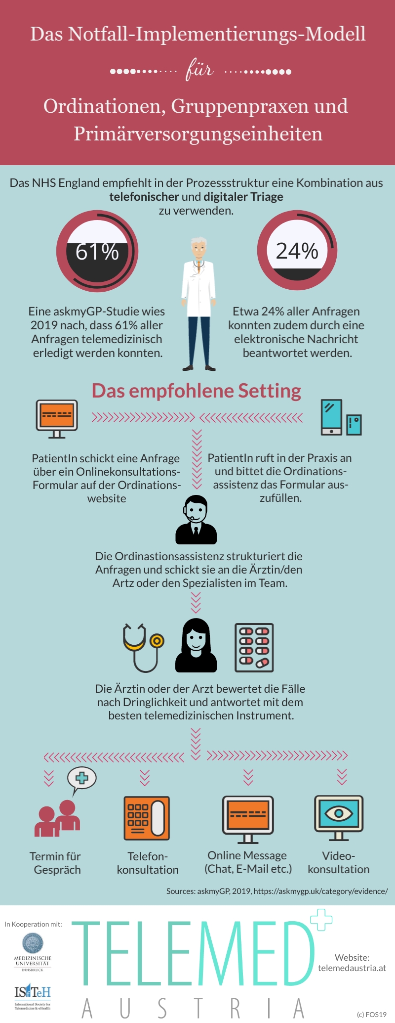 Informationen, inwieweit Telemedizin in der Primärversorgung eingesetzt werden kann, sowie der Stellenwert von Zertifizierungen telemedizinischer Angeboten und Anwendungen als Qualitätssicherungsinstrument für Betreiber von Primärversorgunsgzentren, Gesundheitsdienstleistungsanbeiter (GDA), Hausarzt- und Facharztpraxen als auch Applikationsanbieter